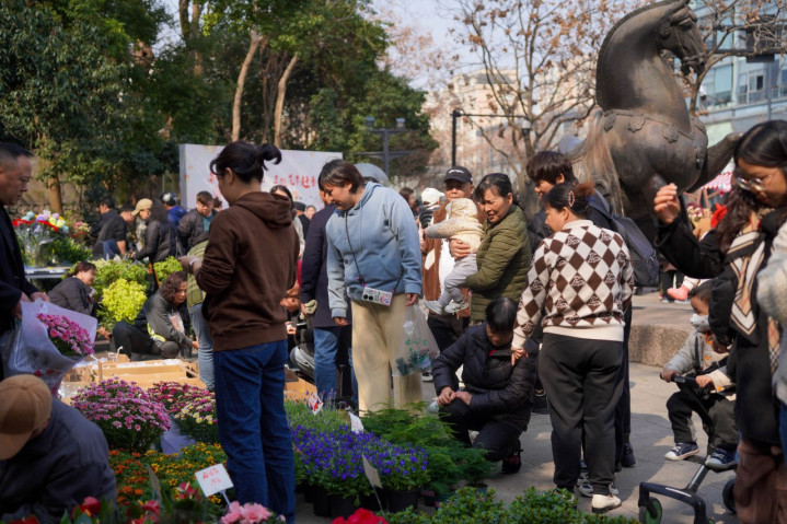 马塍花市。杭州西溪街说念文天社区供图