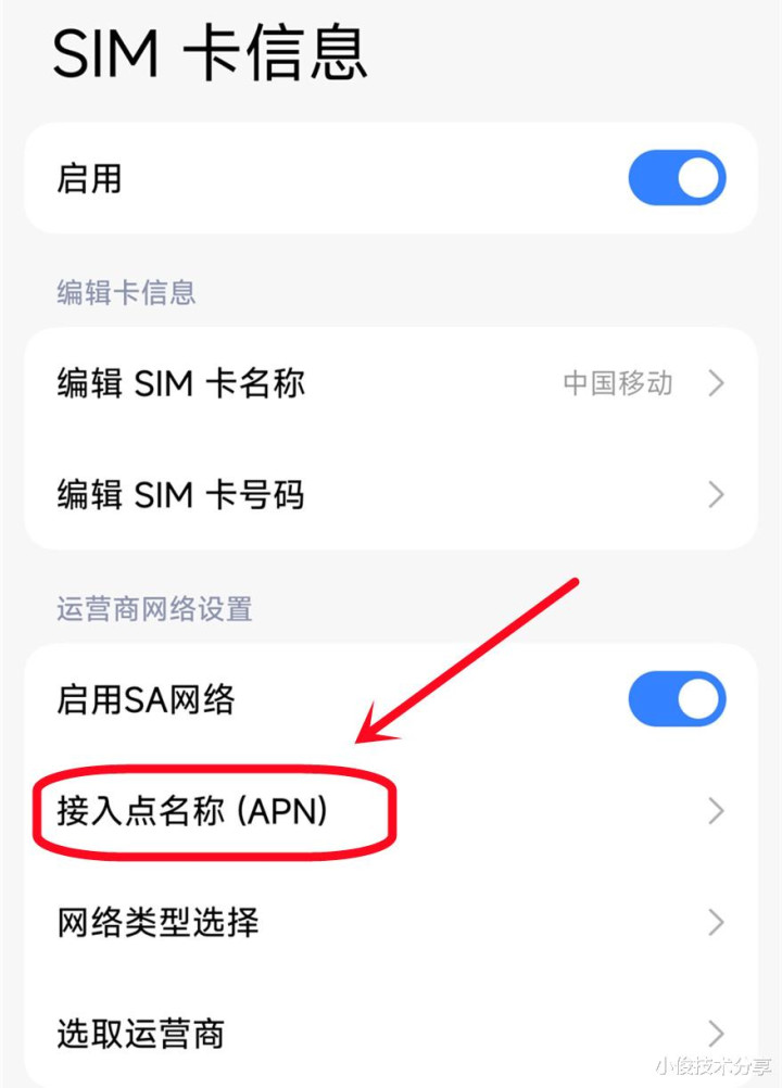 我们把它给点开哈,点开之后,你仔细看了,在左下角这边有一个+号,写着新建APN,看到莫得,是不是有这样的小字,有些手机可能是在右上角,每个手机牌子不同,是以多几许少王人会不不异的,然而功能王人是不异的,我们点击【新建APN】