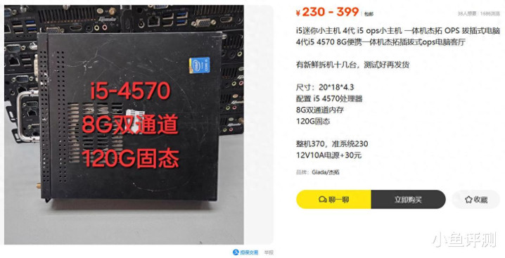 最近二手鱼上瞬息冒出一批杰拓OPS小主机,全金属外壳、带提手、双方还有机柜螺丝孔,一看便是从机柜上拆下来的。成立是老但不落后,i5-4570、8GB双通谈内存、120GB固态,整机370,准系统以至只好230元!