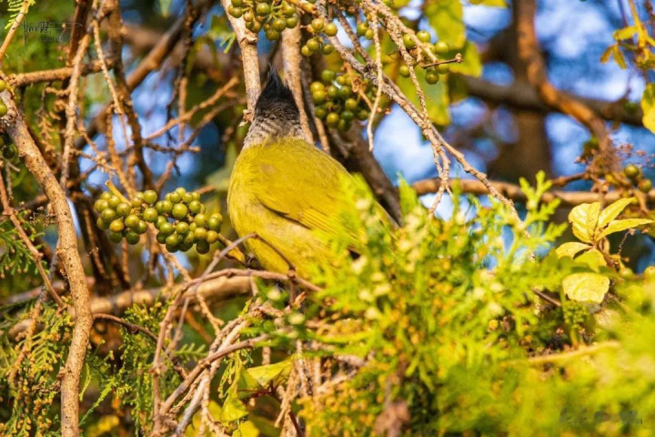因为在沙溪仍是拍过许多黑喉红臀鹎的相片,两者一比,黄臀鹎的颜值昭着不在一个级别,是以在本文作“充数”之用。