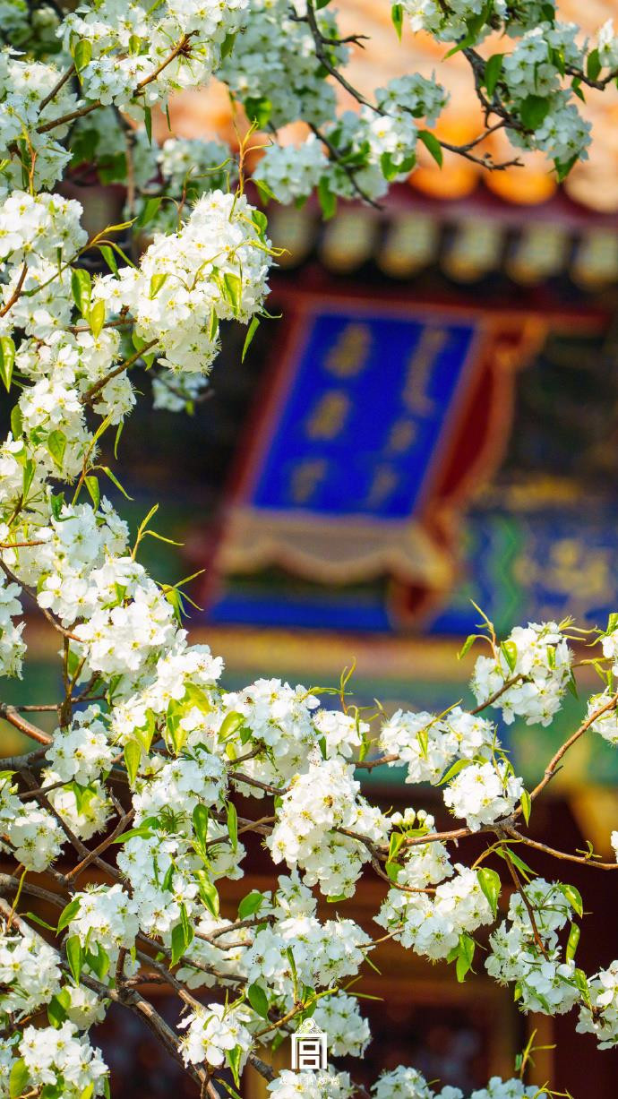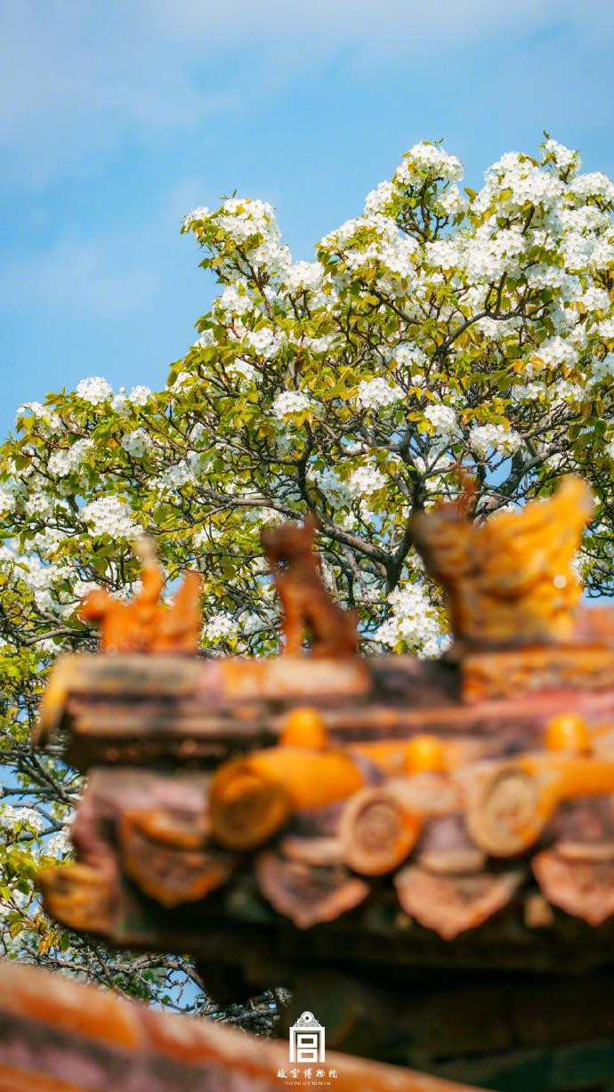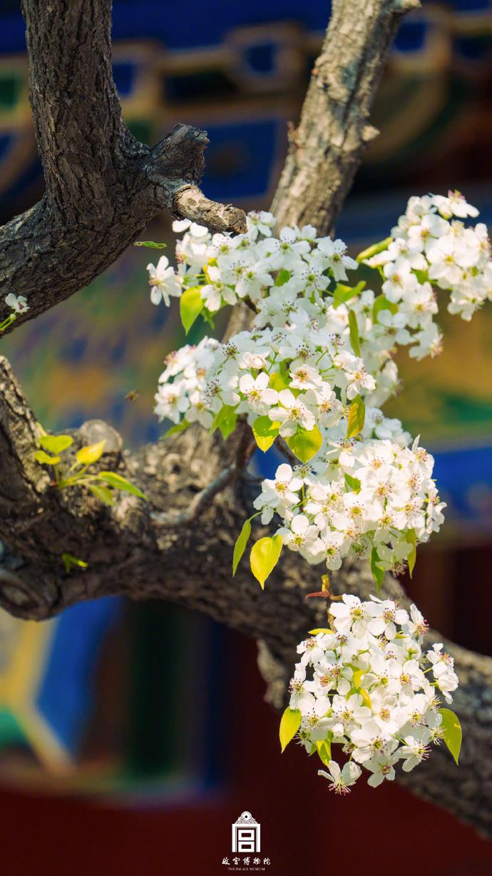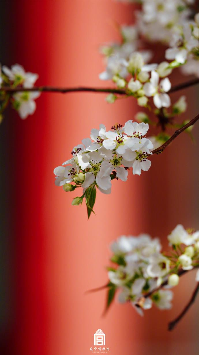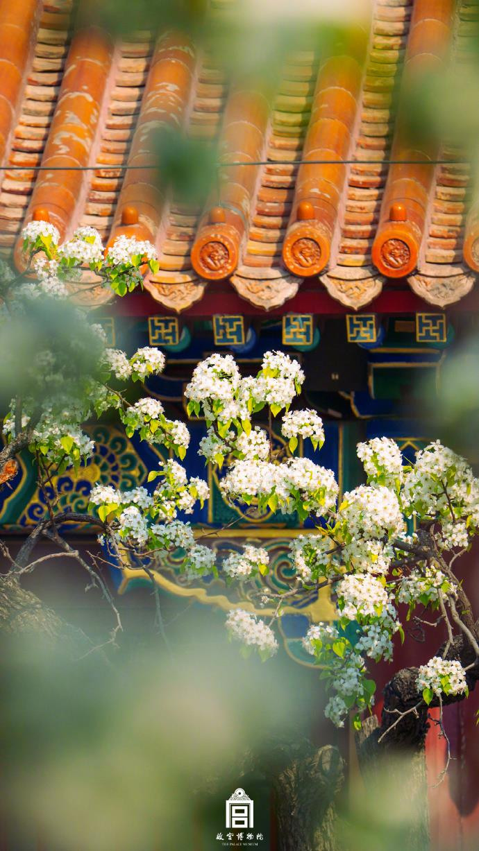 一树梨斑白,春风自往来。故宫春日壁纸上新了,21点游戏白皙花朵衬托着红墙古建,古香古色!(起原:故宫博物院)
