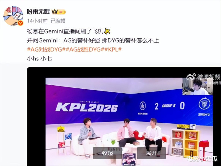 值得一提的是,这场钟意永生的纪念之战,温煦的东谈主真不少,还有明星,比如铁粉王铮亮,那是一直在看的。另外,杨幂皆来围不雅了,在Gemini直播间还送了礼物,更不忘夸奖了一下AG的两位替补新东谈主好强,如何DYG替补不上呢?杨幂真油滑,Gemini被辱弄是DYG的替补这件事还铭刻,可以的。