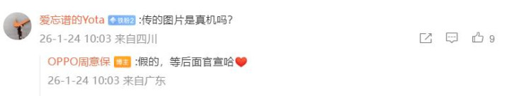 1月24日也即是昨天也不知说念源泉是那处,全网齐在传OPPO Find X9 Ultra的外不雅蓄意图,传闻是来自国际的某个科技网站。针对这个外不雅蓄意就有东说念主去问了OPPO Find系列产物司理周意保,他默示:假的,等背面官宣哈。看来确凿虚惊一场,因为网传的阿谁OPPO Find X9 Ultra高清渲染图太概括了,战胜一般东说念主的审好意思不雅齐罗致不了。好在周意保实时辟谣了,不然该机还莫得慎重发布,就让有东说念主有一种。来自行业的信息领路OPPO Find X9 Ultra将会在春节之后发布,是以这样早不可能有音书的。