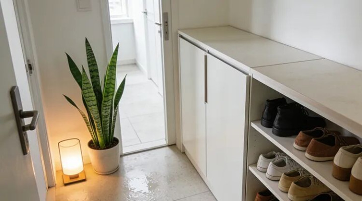 鞋子归类收纳进带门鞋柜,不过露,幸免秽气扩散。