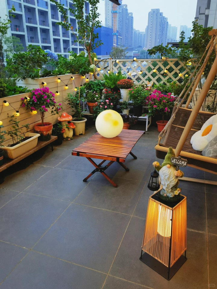 看别东说念主家露台漂亮,心动了。坐窝照搬,买网红花架、同款串灯、ins风摆件。