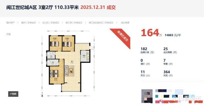 这个话题,我暂且不作念无间,因为我今天看到闽江世纪城的一套二手房成交,非论是从面积,如故价钱,都很允洽他的需求,如果他有看到我这篇著述,不妨去闽江世纪城转转。
