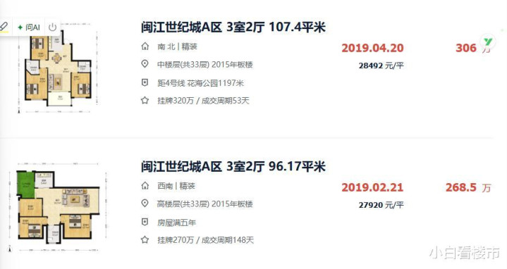 为什么,我的对价钱会有如斯反映,因为闽江世纪城岑岭时间,它的均价在29000元独揽,2019年至2020年时间,卖出过好多100平米独揽的户型,成交价钱在300万凹凸。(网上稀班班可考)
