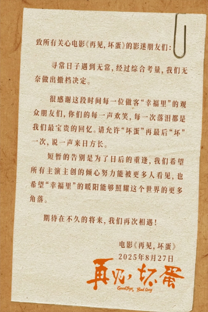 比及第六天,累计票房才26.7万,片方推行能分到的钱只好9.3万,亏本率高达98.4%,终末没见解只可官宣撤档,妥妥的年度票房惨案。
