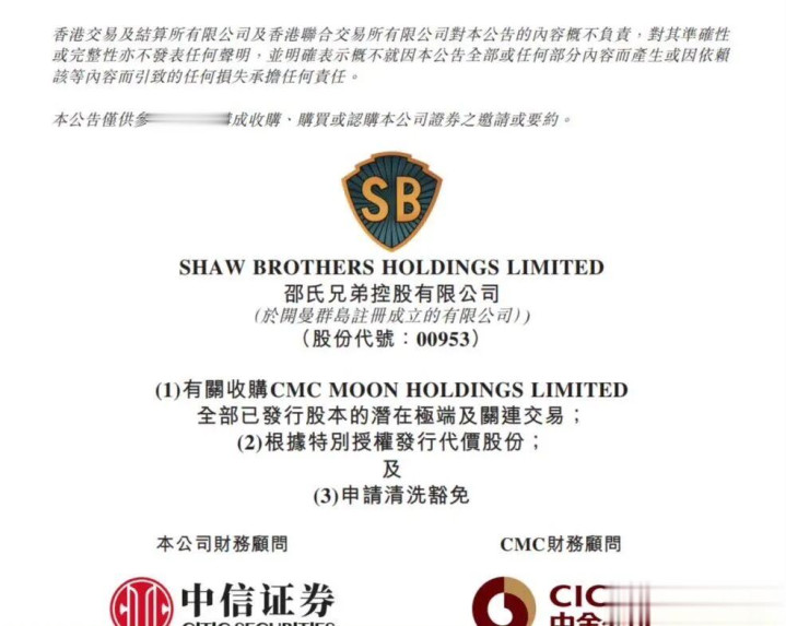 2026年1月21日,邵氏昆仲的公告称,设想收购其主要股东华东谈主文化旗下中枢影视金钱。由于正午阳光是CMC旗下遑急公司,媒体推测其可能被纳入收购范围。