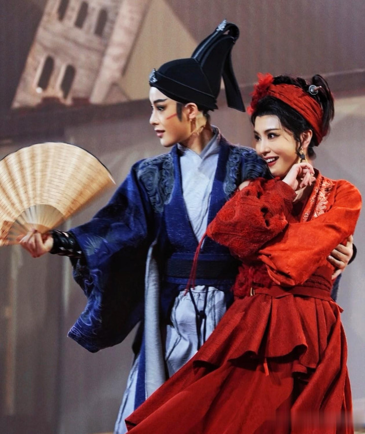 最让东说念主印象真切的,是前段时辰她在东方卫视跨年晚会上的《霸王别姬》 一个东说念主,分饰项羽和虞姬。