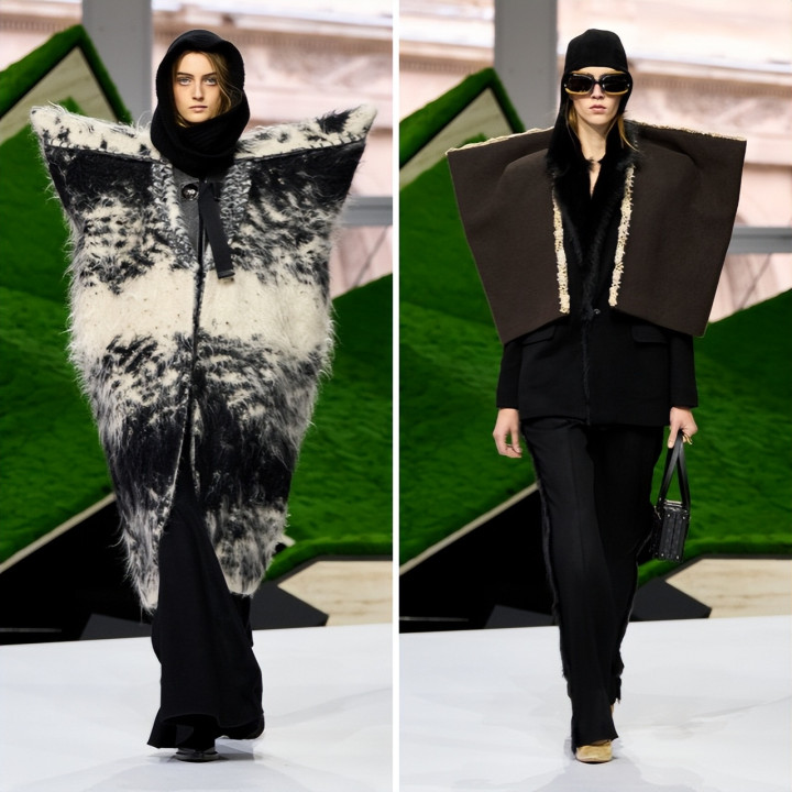 拉开秀场序幕的是一件肩部狡计夸张的无袖大衣,其刺猬般的羊毛纹理、毛皮袒护以及立体目的作风的廓形尤为引东谈主闪耀。