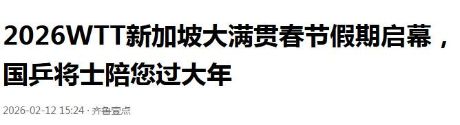 皆鲁壹点《2026WTT新加坡大满贯春节假期启幕,国乒将士陪您过大年》发布时代:2026.2.12