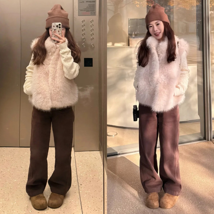 爽直的冬天气温低,为了御寒各式耐心的单品堆砌,很容易穿出肥美的截至,是以马甲是个异常可以的选拔,毕竟少了袖子的规划,在相对天气较好的技艺,可以选拔马甲叠穿卫衣好像毛衣,比如这种毛绒马甲,确切超等显温顺,况且高等感满满。