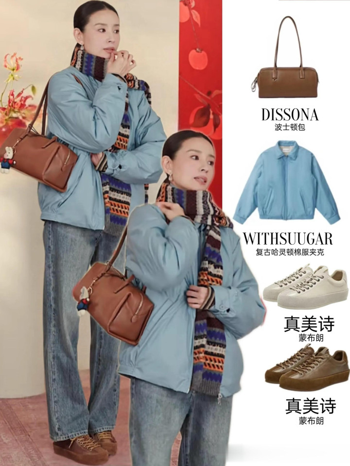 董洁穿搭真实把浮松感和氛围感焊在身上了!雾霾蓝棉服自带凉爽滤镜,配上相沿撞色针织领巾,扫数东谈主和善又随心,脚踩一对蒙布朗鞋,棕色彩点缀让整套搭配多了几分相沿质感~