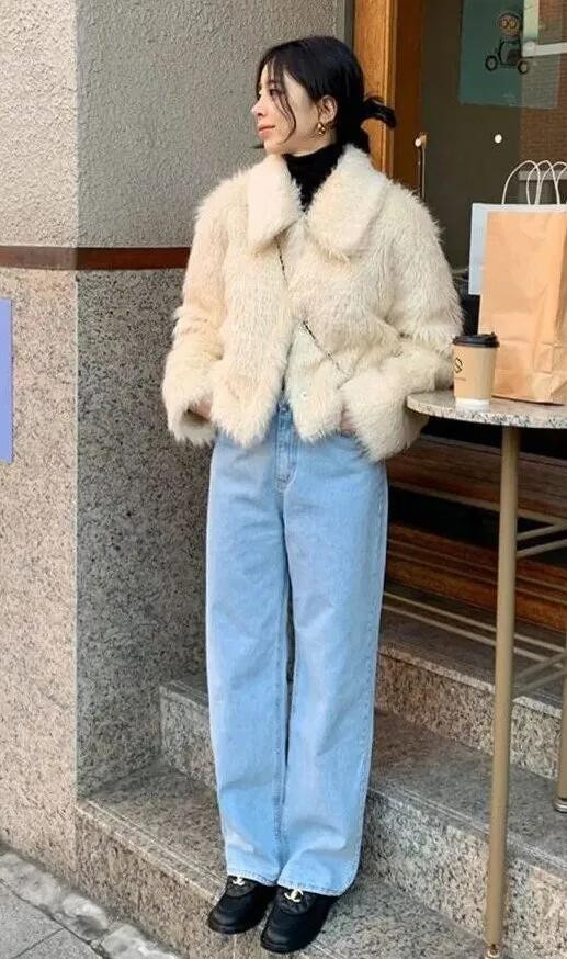 白色的短款皮草外衣是令嫒密斯姐的标配,下身不搭裙装而遴选基础款的检方正筒牛仔裤,增添了街头即兴感,显高显瘦,贵气又失业,气质又欢欣,作风更讨喜。▼