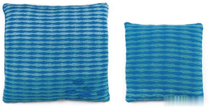 这款海洋风海浪抱枕,由 Marleen Lubbers 狡计,用 Colour Cake 蓝绿段染线钩织而成