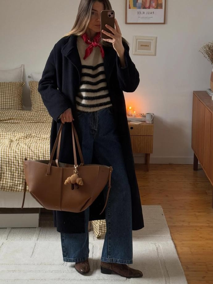 aga_bdk的秋冬过渡穿搭,在色调遴选上极具程序特点,偏疼低迷漫的中性色与地面色系。驼色、燕麦色、深棕、牛仔蓝是她造型中的高频色调,这些情愫不仅适配秋冬的温煦氛围,搭配起来也毫无难度,松开就能打造出高档感。她擅长用同色系叠穿构建档次,比如一件燕麦色宽松毛衣内搭浅棕色高领针织衫,下身搭配深棕色直筒裤,色调过渡当然柔软,既御寒又不会显得肥壮。偶尔也会加入少许低迷漫亮色四肢点缀,比如香芋紫领巾或浅粉色针织帽,骤然让千里闷的中性色造型忻悦期望。