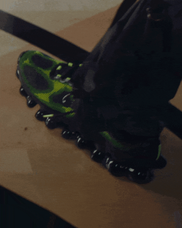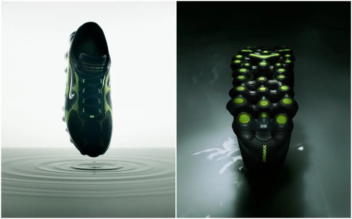 同期,毒箭蛙的脚趾垫也为鞋底想象提供了灵感,这一灵感在首流配色中取得了完整呈现:极具戏剧性的绿色搭配镀铬 Swoosh 标识,鞋面光滑无缝,橡胶外底采取半透明带色想象,尽显奥密感。