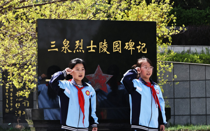 在改进老区山西省运城市新绛县三泉改进义士陵寝,社会各界环球和小学生宣誓惦念先烈