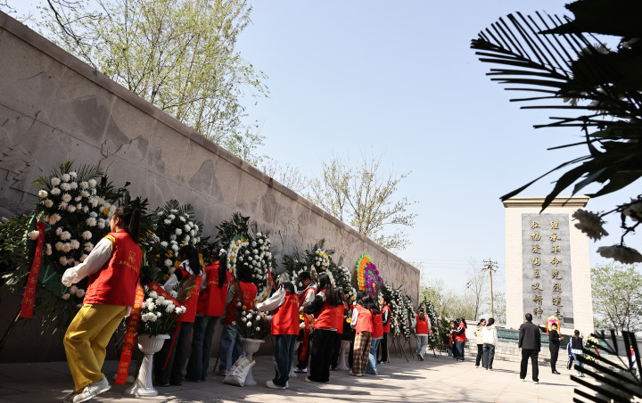 改进老区山西省运城市新绛县社会各界环球在三泉改进义士陵寝省墓整理花圈惦念先烈