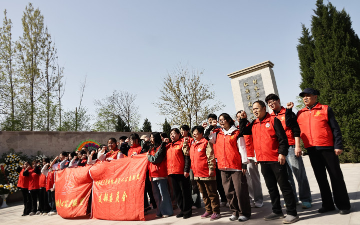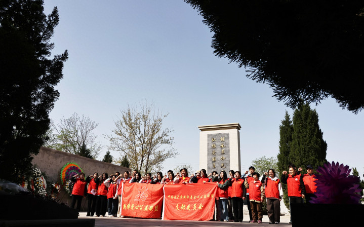改进老区山西省运城市新绛县爱心公益定约志愿者在三泉改进义士陵寝宣誓惦念先烈
